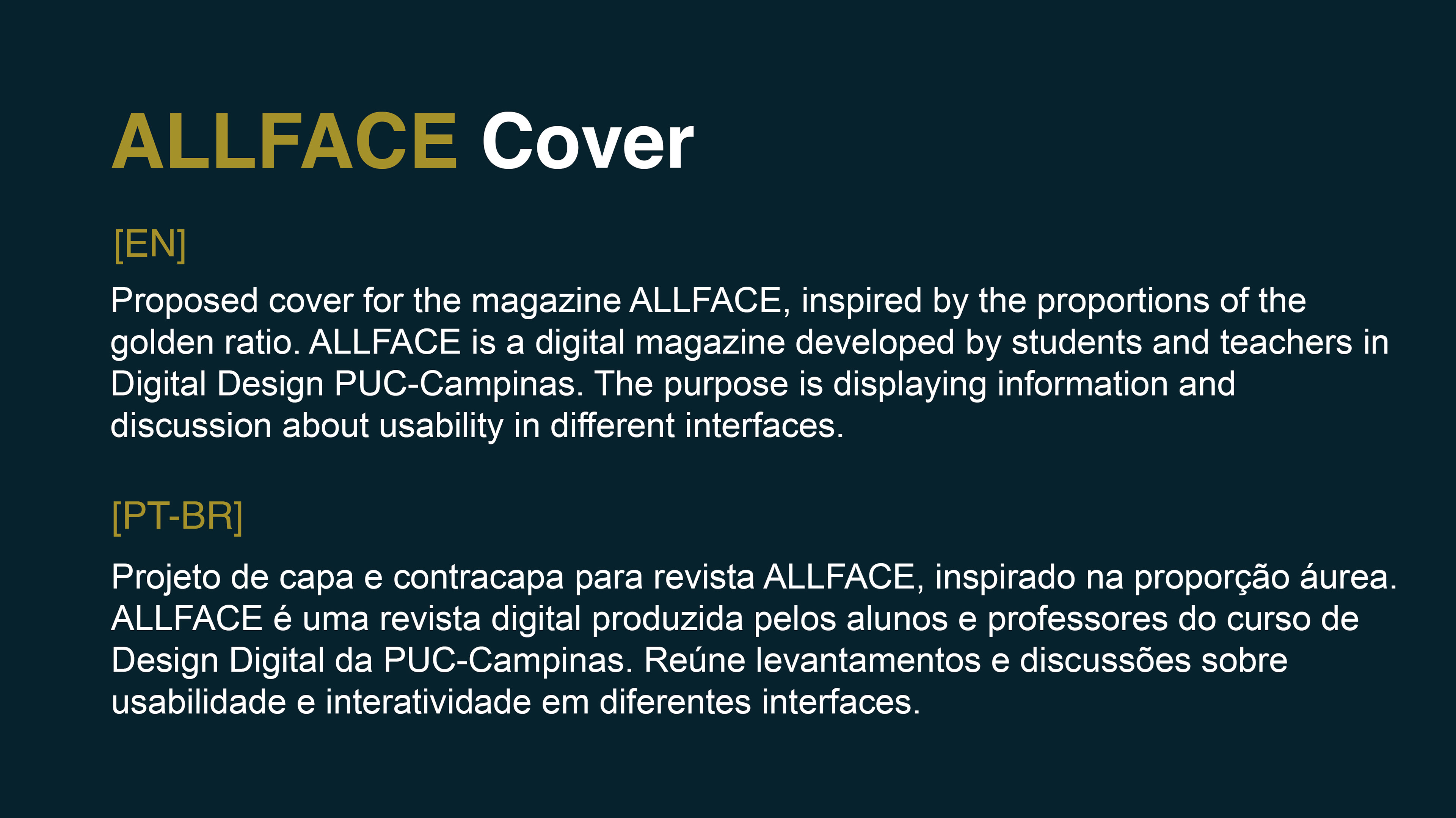 Cover and back cover proposition for the ALLFACE Magize. Proposta de capa e contra capa para revista ALLFACE.